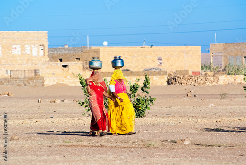 Women Carrying Pottery Jugs Of Water Thar Desert Jaisalmer Rajasthan India Photographic Print Philip Kramer Art Com